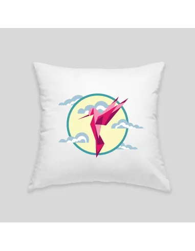 The hummingbird cushion will add a graphic and colorful touch to your sofa, armchair or bed. Create a modern and zen atmosphere that inspires relaxation. Cover 100% cotton, machine washable at 60° / Filling 100% hypoallergenic polyester.